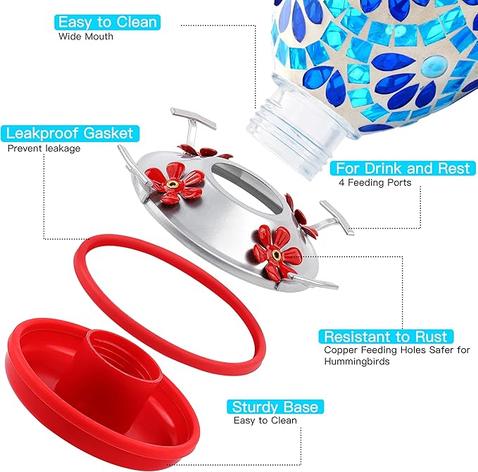 - Perfect Gift for Nature Lovers: This beautiful mosaic glass hummingbird feeders for outdoors hanging is colorful and durable, suitable for porches, backyards, balconies, patios and gardens. It is an exquisite gift for gardening enthusiasts or nature fans, suitable for various festivals, birthdays and other scenes