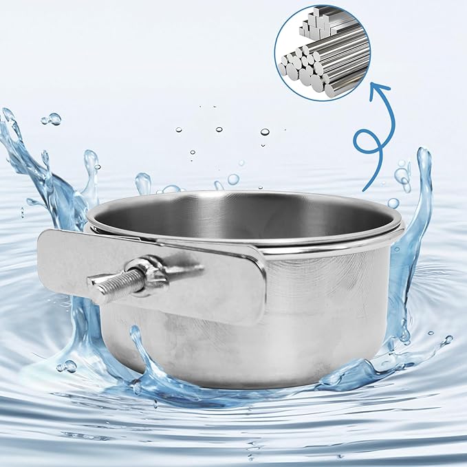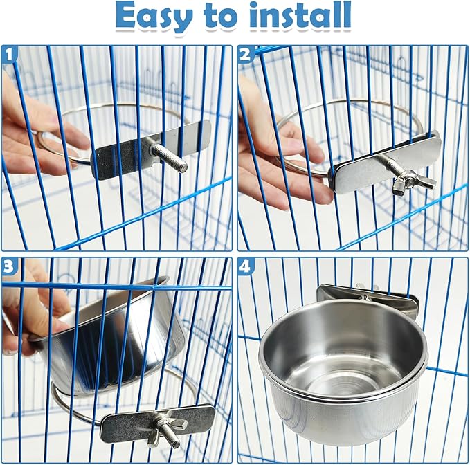 - Not easy to rust: Feed your feathered friend in the durable, dishwasher-safe all living things. stainless steel food and water cup. Easy to install, durable, easy to remove from the stand, rust resistant and not easy to break, dishwasher safe