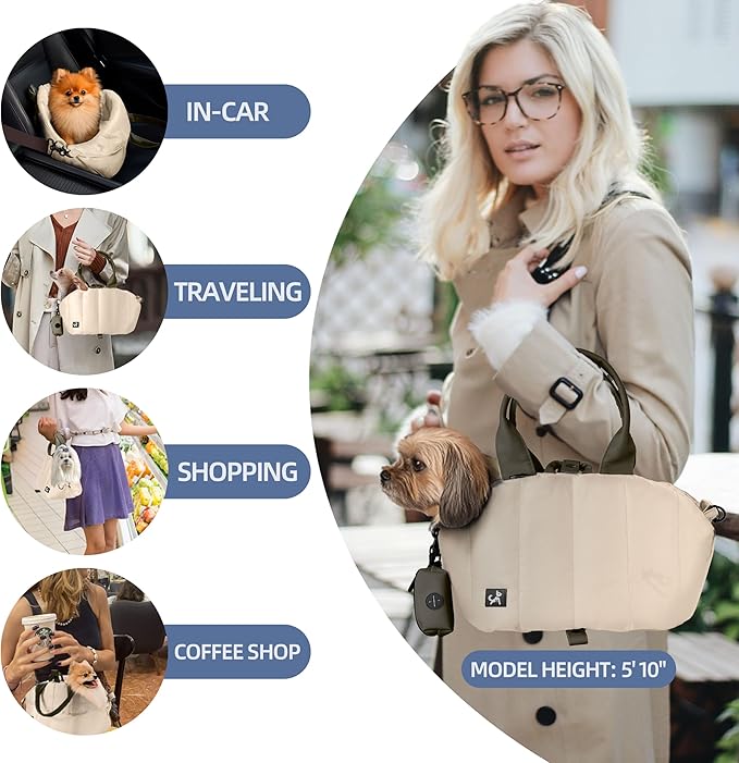Sytopia Small Dog Carrier Purse, Portable Pet Carrier Tote Carrier with Pockets, Adjustable Safety Leash, Waterproof Dog Travel Bag, Travel Pets Purse up to 4 Lbs, Cream Beige