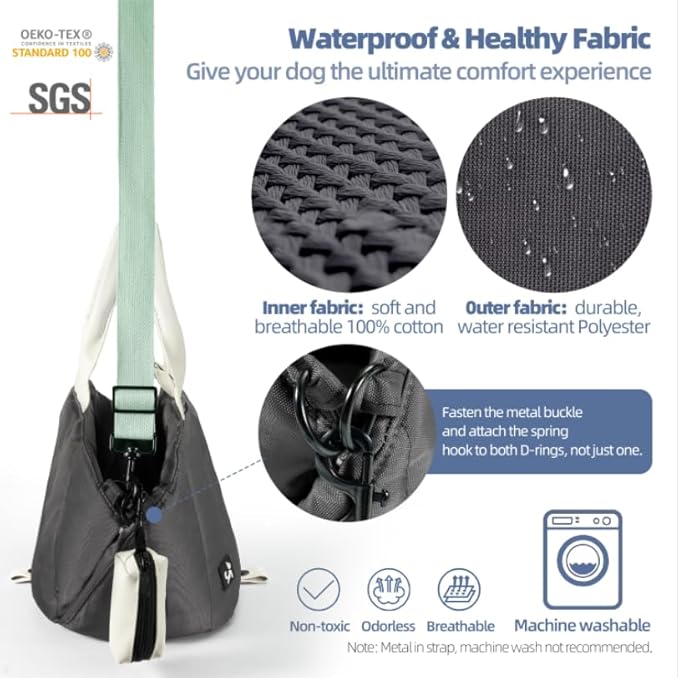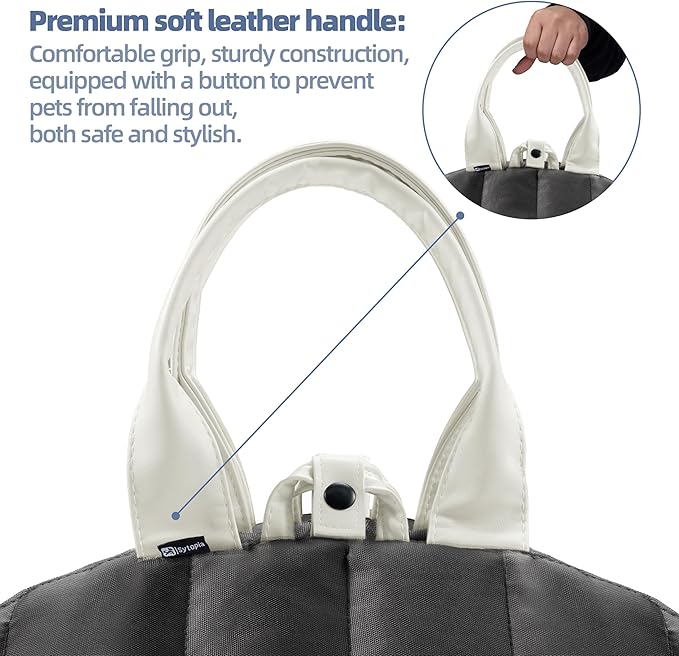 - 🛡【Sturdy & Secure Construction】 Made with thick, non-toxic, bite-resistant soft oxford fabric, our carrier is built to last and keeps its shape. The secure buckle and reinforced base ensure your pet’s safety. Close the hidden clasp when needed to keep your furry friend protected during every outing.