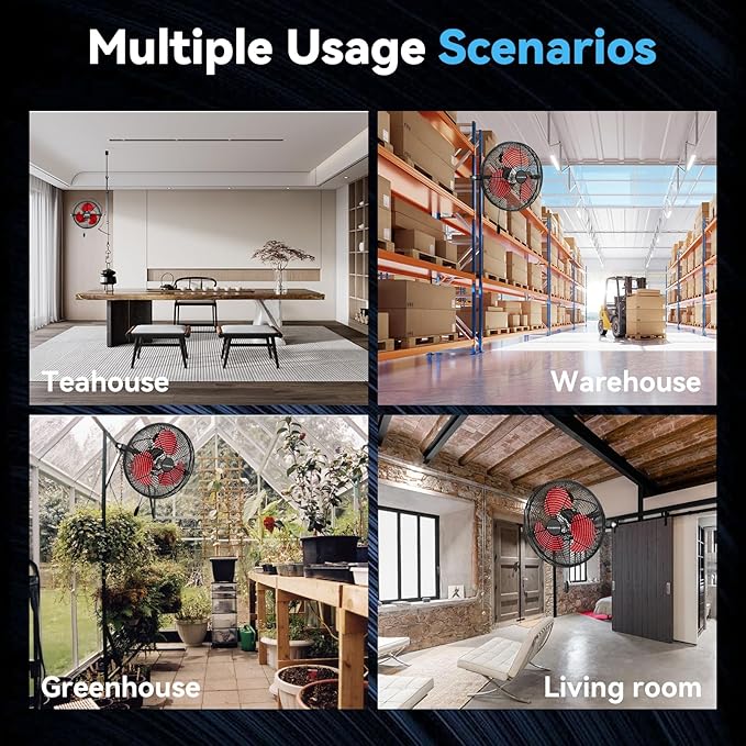 - ๐๐จ๐ฐ-๐๐จ๐ข๐ฌ๐ ๐๐๐ฌ๐ข๐ ๐ง - The black heavy-duty wall fan operates at a high speed of 9500 CFM with a noise level of only 65dB, which is lower than the industry standard, creating a quieter gathering or working environment