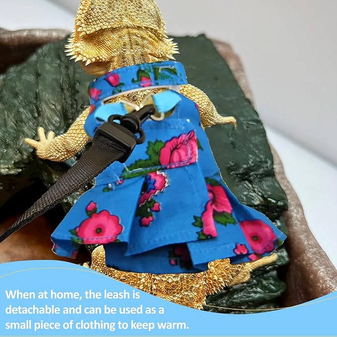 - Dual-purpose design: This cute lizard floral skirt can be tied with a leash when going out, and can be removed and used as a small piece of clothing when at home, so that the pet can also keep warm at home. It is very suitable for outdoor adventures and indoor leisure.