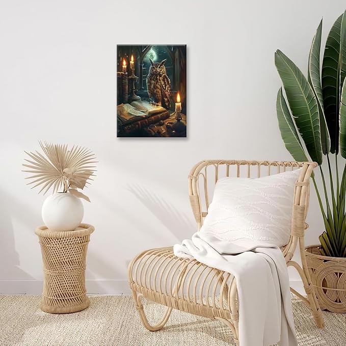 Owl Book Wall Art Vintage Canvas Wall Decor Prints Framed Painting Owls Pictures Gifts Artwork for Bathroom Living Dining Bedroom 16"x20"