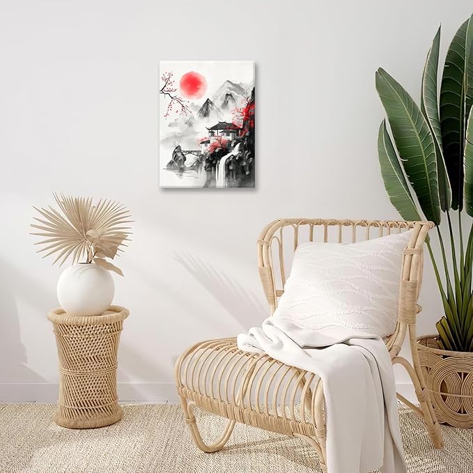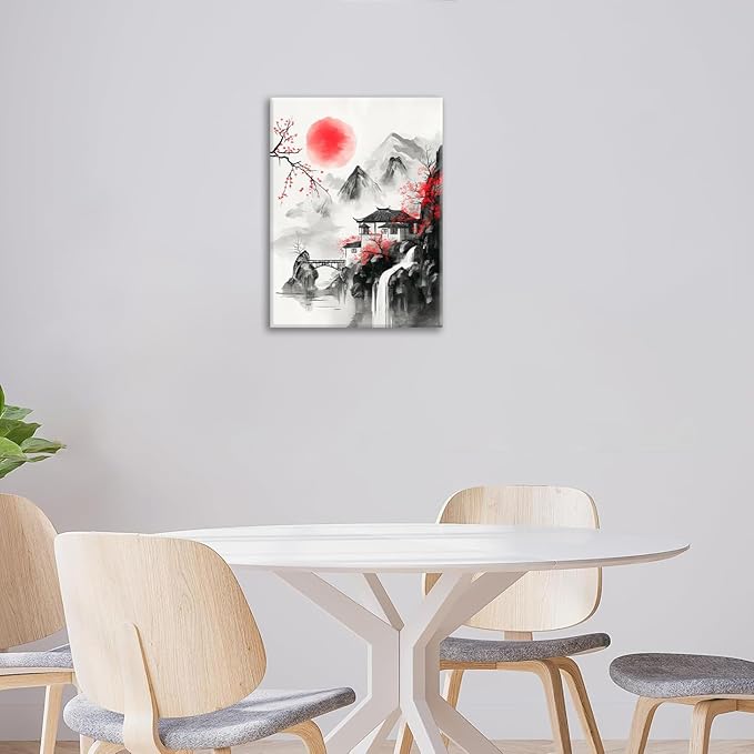 Japanese Wall Art Canvas Asian Nature Wall Decor Prints Framed Painting Mountain Landscape Pictures Gifts Artwork for Bathroom 16"x20"