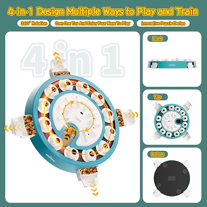 - Slow Eating for Better Digestion – This 4-in-1 dog puzzle feeder slows down eating speed, helping reduce choking, vomiting, and digestive issues. Designed as an interactive dog puzzle toy, it supports healthier mealtime habits while turning feeding into an engaging challenge.