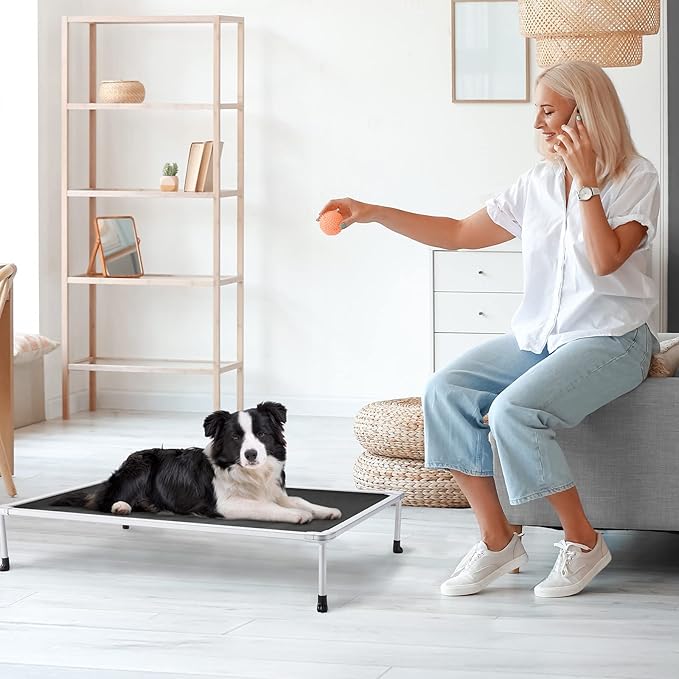 - Elevated Comfort: Raised 7 inches off the ground to promote airflow, keeping your pet cool, dry, and clean. Ideal for avoiding damp surfaces and providing a healthier resting environment