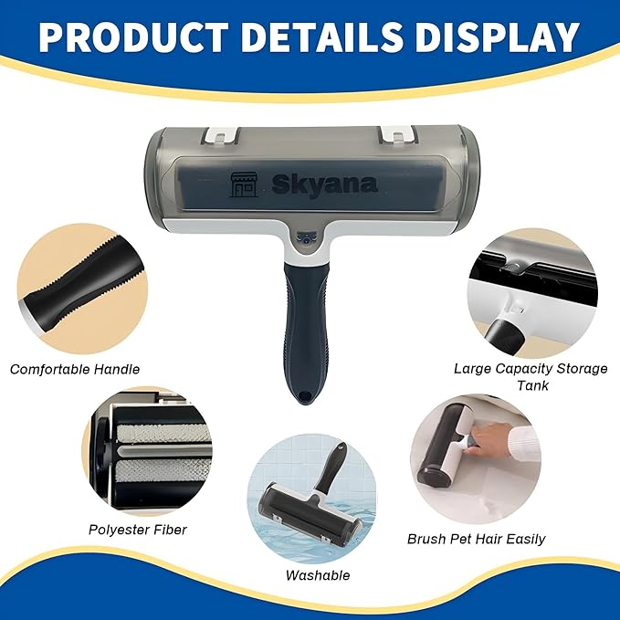 SKYANA Pet Hair Remover Roller Brush, Self-Cleaning Lint Roller for Dogs and Cats.hair removal for Fourniture,Couch,Carpet,Clothing,and bedding,portable,multiple surface.Removal tool.Lint Roller