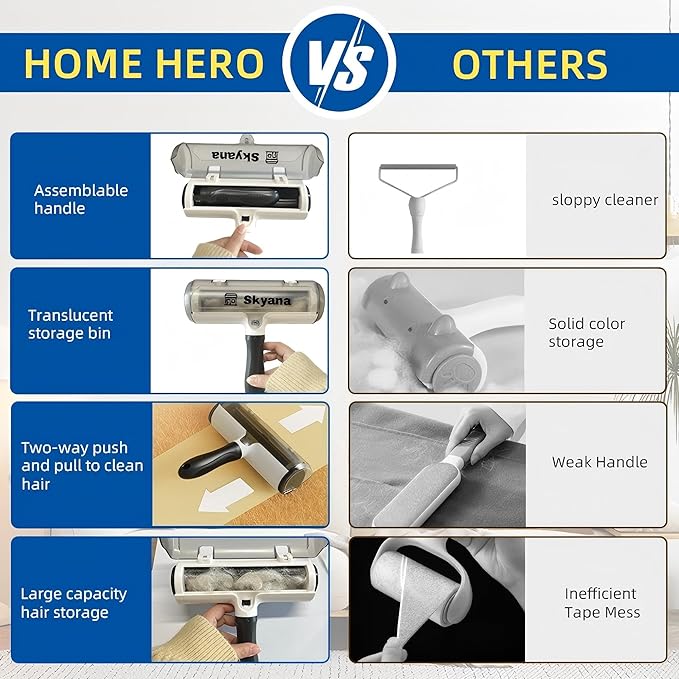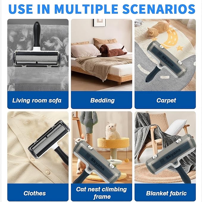 - versatile use: Effectively removes pet hair from furniture, carpets, bedding, car seats, and other surfaces with a wide roller head design