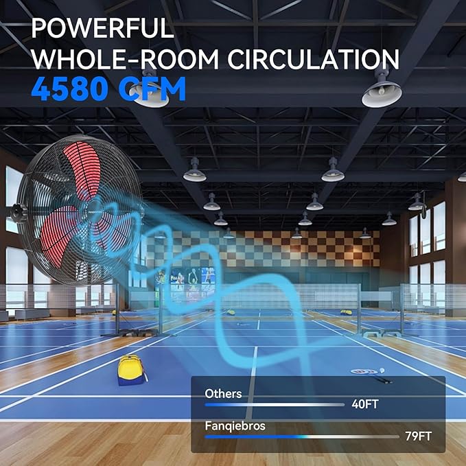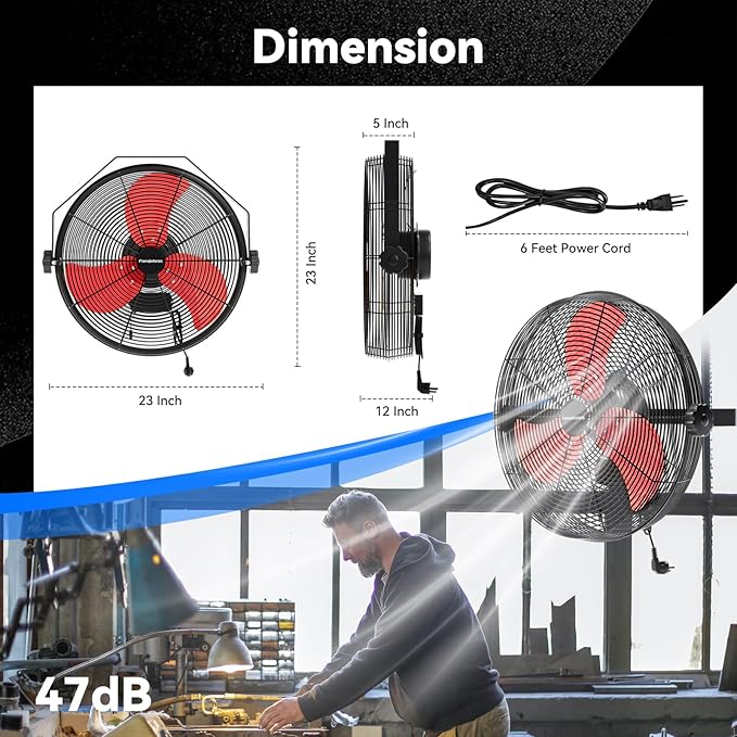 - ๐๐จ๐ฐ-๐๐จ๐ข๐ฌ๐ ๐๐๐ฌ๐ข๐ ๐ง - The heavy-duty wall fan operates at a high speed of 4580 CFM with a noise level of only 60dB, which is lower than the industry standard, creating a quieter gathering or working environment