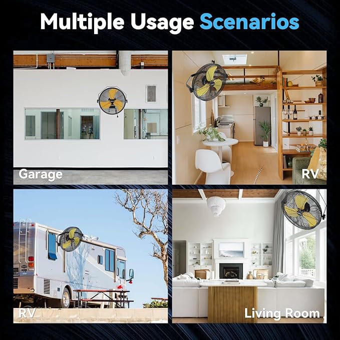 - ๐๐ข๐ ๐ก ๐๐๐ฅ๐จ๐๐ข๐ญ๐ฒ ๐๐ข๐ซ ๐ ๐ฅ๐จ๐ฐ - Equipped with 3 adjustable wind speeds, low (3500CFM), medium (4200CFM) and high (4580 CFM), this wall fan utilizes the raw power of the pure copper motor to provide hurricane-like airflow to perfect for outdoor patio, garage, warehouse, humidity environments, dust