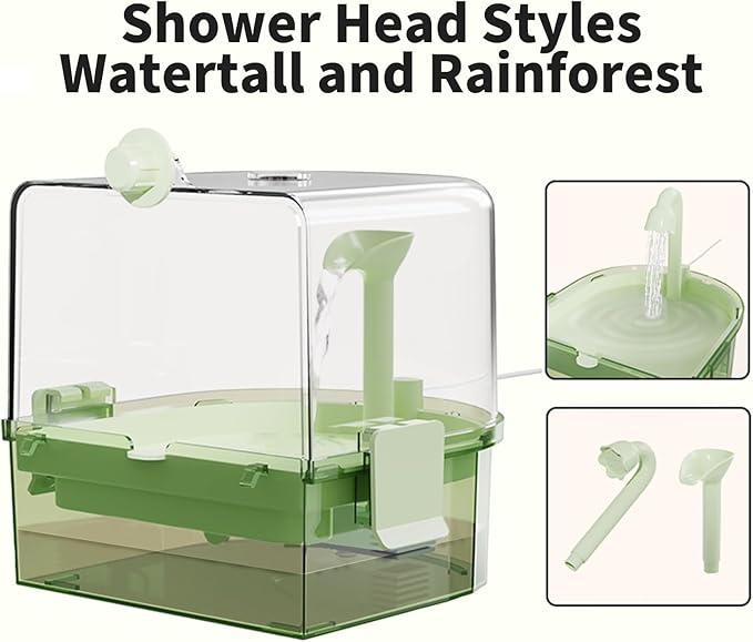 Automatic Bird Baths for Cage – Indoor Parakeet Bath with Pump, Bird Shower with 2 Modes Running Water, Bird Cage Accessory for Pet Birds Conure Budgies Cockatiels Lovebird(Green)