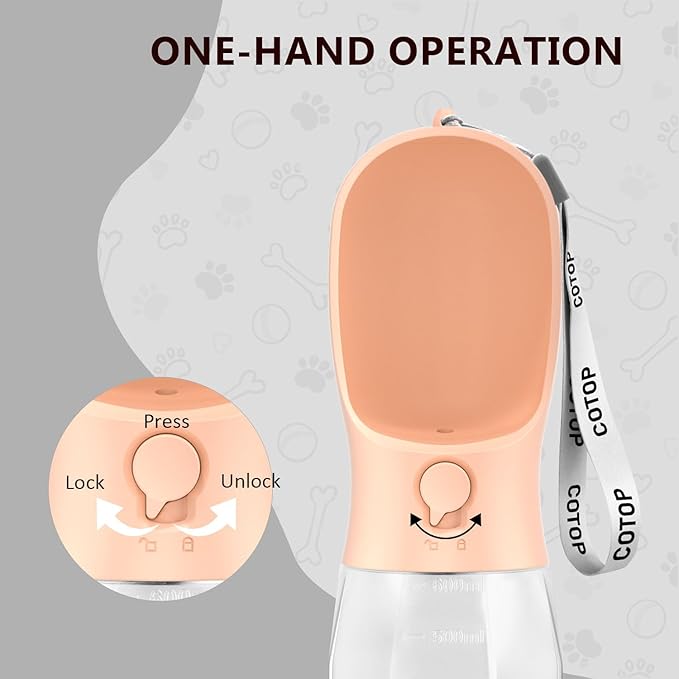- 【Easy to Use 】 Turn left and depress the lock button, the water in the bottle can flow to bowl or flow back from bowl to bottle slowly. There is no waste of water. All operations can be finished by one hand, very easy to use. ALWAYS REMEMBER to turn right before putting the bottle into your bag, prevent leaking.