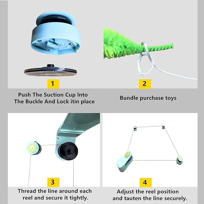 - Multiple DIY Game Modes:This cat interactive toys for indoor cats features 3 suction cup-mounted spool wheels, allowing free customization of movement paths based on spatial layout, creating a cat toys for bored indoor adult cats stimulation chase lure course kit that sparks their natural hunting instincts. Burning calories and preventing obesity. This is the Happy and Healthy Kitten Essentials!DIY Attachments Swap between cat-favorite feather teasers, rope lures, or crinkle balls to maintain novelty and adapt to your catβs evolving play preferences.