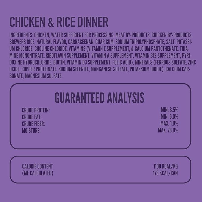 - Premium Protein Duo: Our wet dog food features real chicken as the primary protein source, supporting muscle development and energy levels. Combined with wholesome rice, it creates a balanced and satisfying meal.
