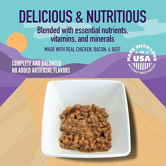 - Tender Beef & Bacon: This wet dog food features real beef paired with savory bacon flavor, offering a high-quality protein blend that supports muscle development and lasting energy for your dog.