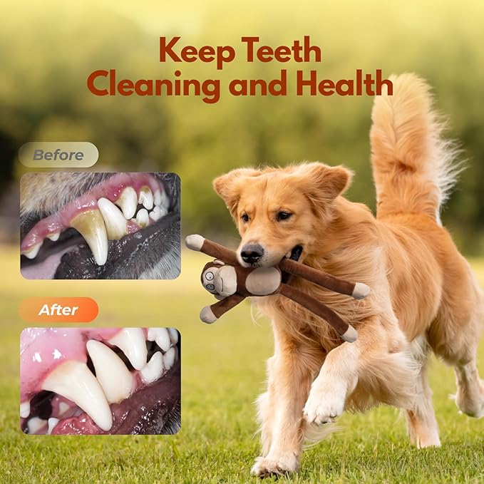 Squeaky Dog Toys with Crinkle Paper Durable Tug of War Monkey Plush Dog Toy with Soft Fabric for Small Middle and Large Dogs