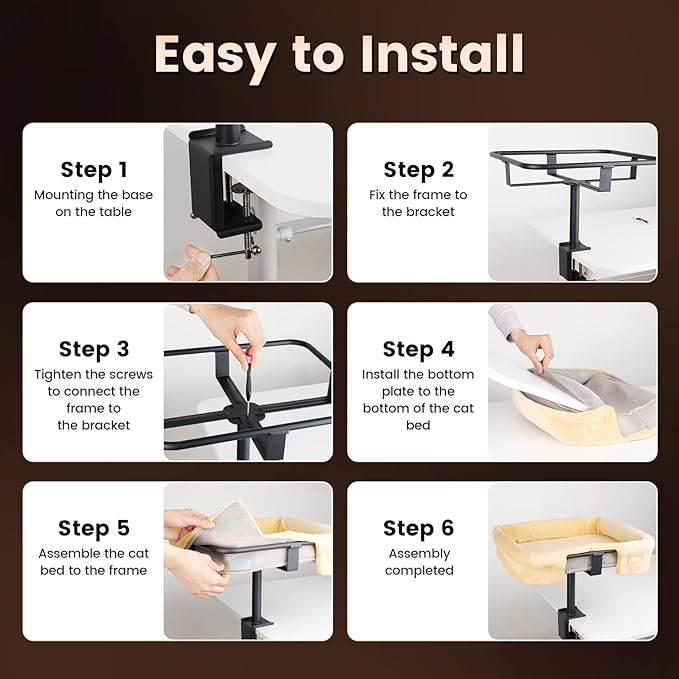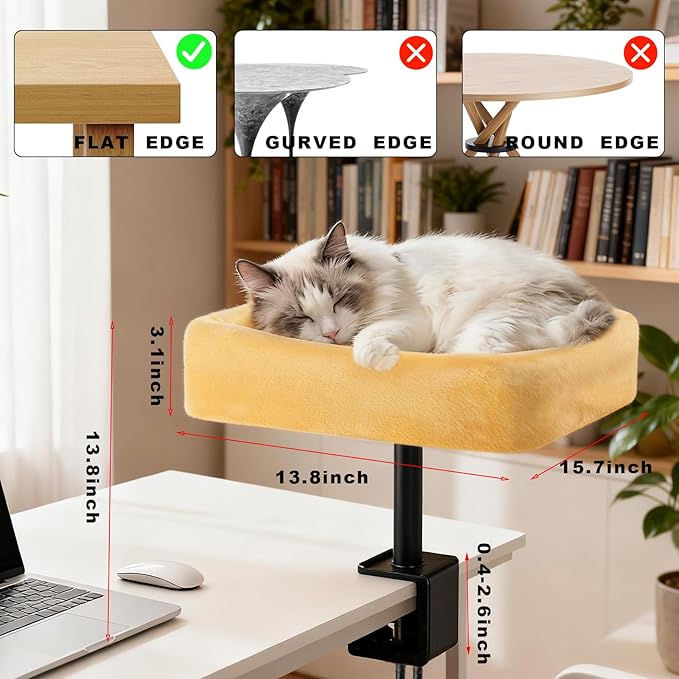 - Wide Compatibility: Designed to fit desk thicknesses from 0.4" to 2.9", this desk cat bed adapts to most office desks, upright desks, game desks, etc. It fulfills cats' instinct to perch high, reducing interference while keeping them close