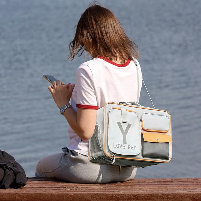 Dog Backpack, Pet Backpack with Upgrade Waist Cushion Design to Better Fit The Waist, Ventilated Soft Cat Backpack for Travel, Hiking, Camping(Gray)