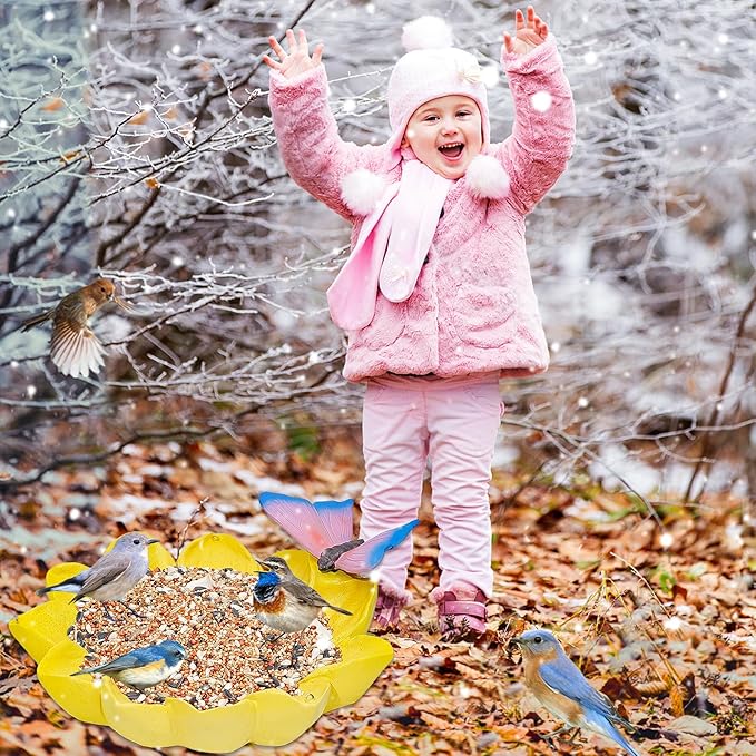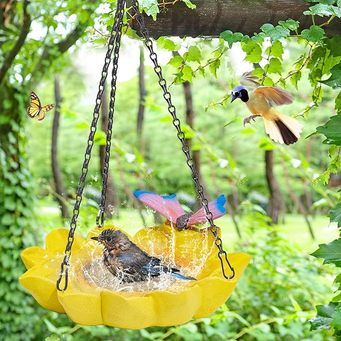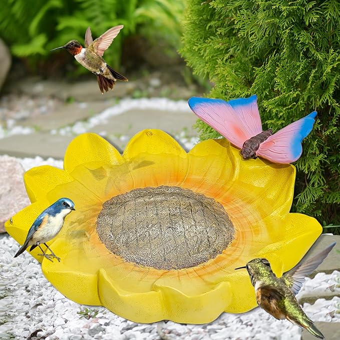 - Vibrant Sunflower Bird Feeder: Hand-painted sunflower bird bath bowl with a detachable butterfly accessory create lifelike garden magic. Attract colorful songbirds while butterflies and bee naturally gravitate to the realistic floral