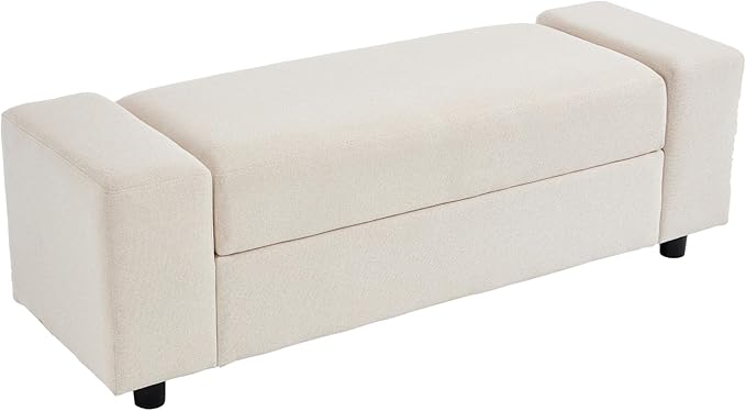 Storage Ottoman Bench,55 Inch End of Bed Linen Bench with Large Storage for Bedroom/Living Room/Entryway/Closet(Beige)