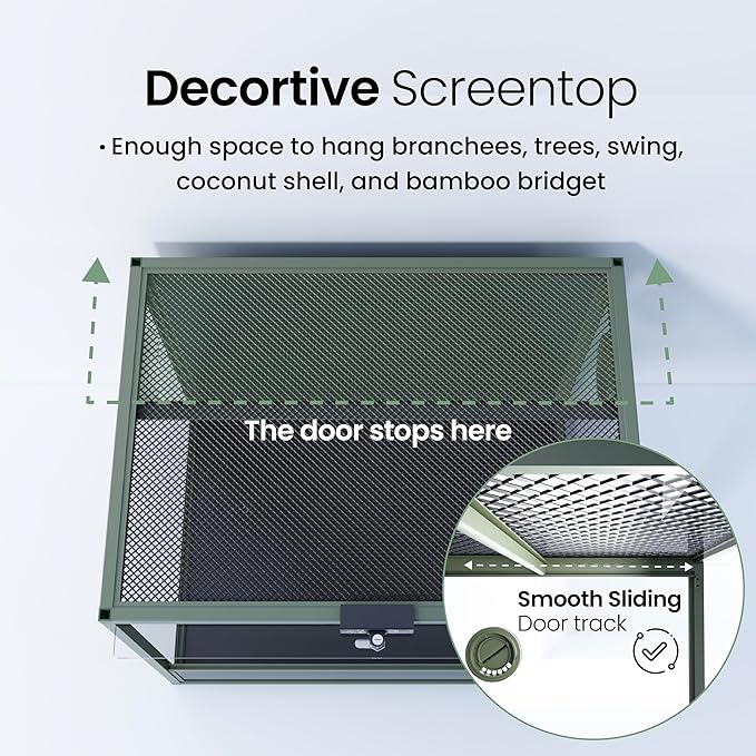 - 【Space Master】Easily flip and slide the door with the handle, tucking it away in the internal track to save space. The door handle can be fixed on the top front bar, to prevent you from being injured by the door falling during feeding and cleaning, and you don't have to worry about leaving fingerprints on the door.