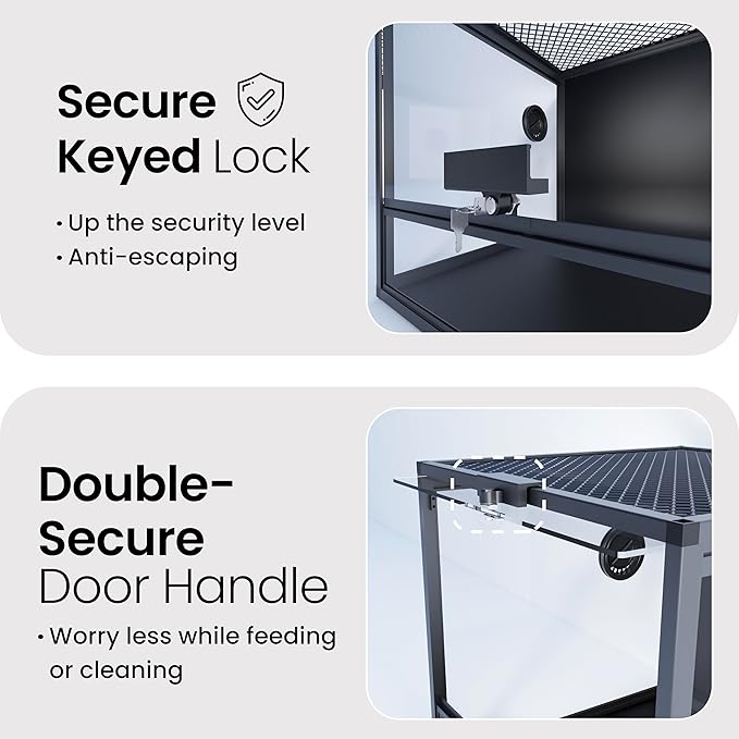 - 【Lock Included】A tempered glass door with a safety keyed lock to prevent escape and accidental opening by others. NO GAPS FOR ESCAPING with fully closed structure. Rigid tempered glass doors for extra safety.