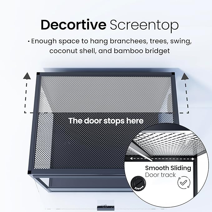 - 【Space Master】Easily flip and slide the door with the handle, tucking it away in the internal track to save space. The door handle can be fixed on the top front bar, to prevent you from being injured by the door falling during feeding and cleaning, and you don't have to worry about leaving fingerprints on the door.