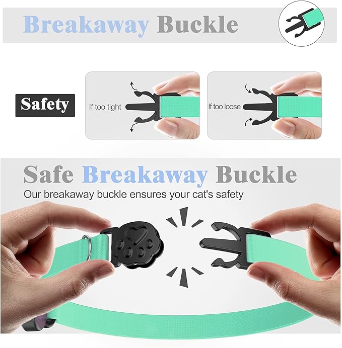 - 𝐁𝐫𝐞𝐚𝐤𝐚𝐰𝐚𝐲 𝐃𝐞𝐬𝐢𝐠𝐧 𝐟𝐨𝐫 𝐒𝐚𝐟𝐞 𝐄𝐬𝐜𝐚𝐩𝐞𝐬: Designed for safety, the breakaway buckle releases under pressure, preventing accidents while your curious cat roams. No worries about snagging on trees or furniture!