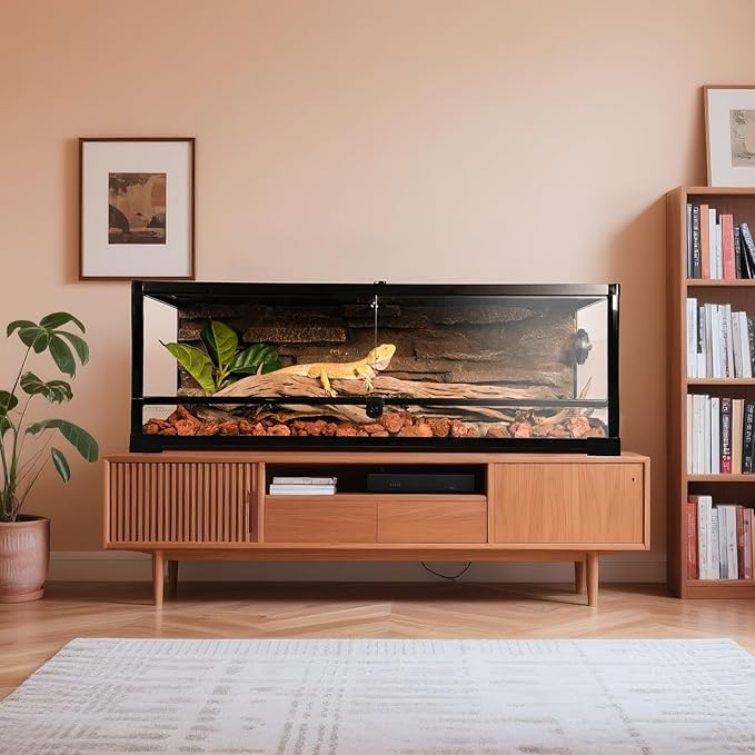 - Premium & Durable Construction: Featuring tempered glass on all four sides and aluminum alloy frame, iron mesh top, this terrarium delivers exceptional durability. Provides crystal-clear, uninterrupted viewing from every angle – an essential component for reptile habitat