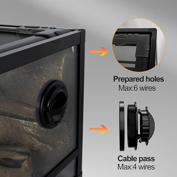 - Dual-Function Base & Cable Port: The unique base serves as a water basin for maintaining humidity and is raised to provide ample space underneath for safely placing heating pads or heat mats. Includes cable ports for tidy wire management