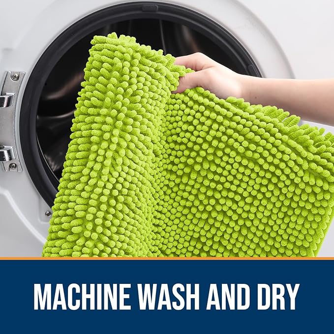 OLANLY Dog Door Mat for Muddy Paws 24x16, Absorbs Moisture and Dirt, Absorbent Non-Slip Washable Doormat, Quick Dry Chenille Mud Mat, Entry Indoor Entryway Carpet for Inside Floor, Bright Green