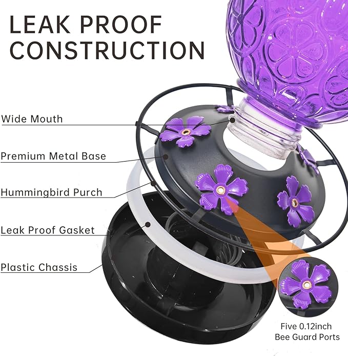 - ❤【Duarable Construction & Leakproof Function】: Crafted with bright, thick and durable glass, including a metal hanging bracket, ensuring long-lasting use season after season and never fading. Built-in durable gasket and seamless base to prevents nectar from spilling