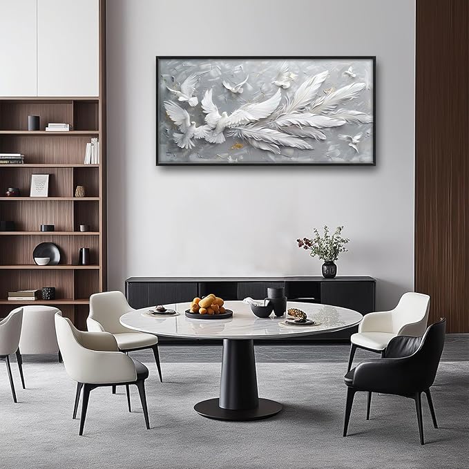 Quorin Feather Dove Bird Large Wall Art White Gray Holy Wings Pictures Peaceful Birds Flying Wall Decor Canvas Print Painting Artwork for Bathroom Living Room Bedroom 60L x 30W