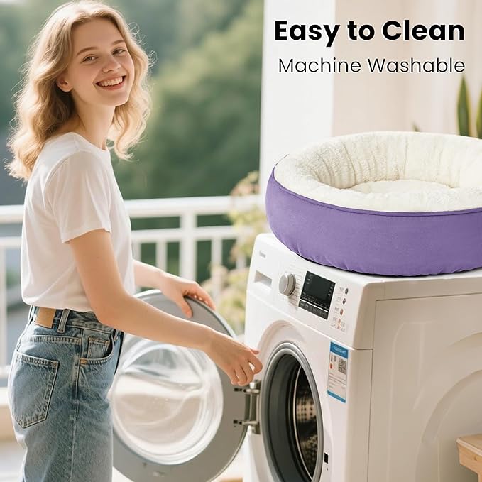 Love's cabin Round Donut Cat and Dog Cushion Bed, 20in Pet Bed for Cats or Small Dogs, Anti-Slip & Water-Resistant Bottom, Super Soft Durable Fabric Pet beds, Washable Luxury Bed Lavender
