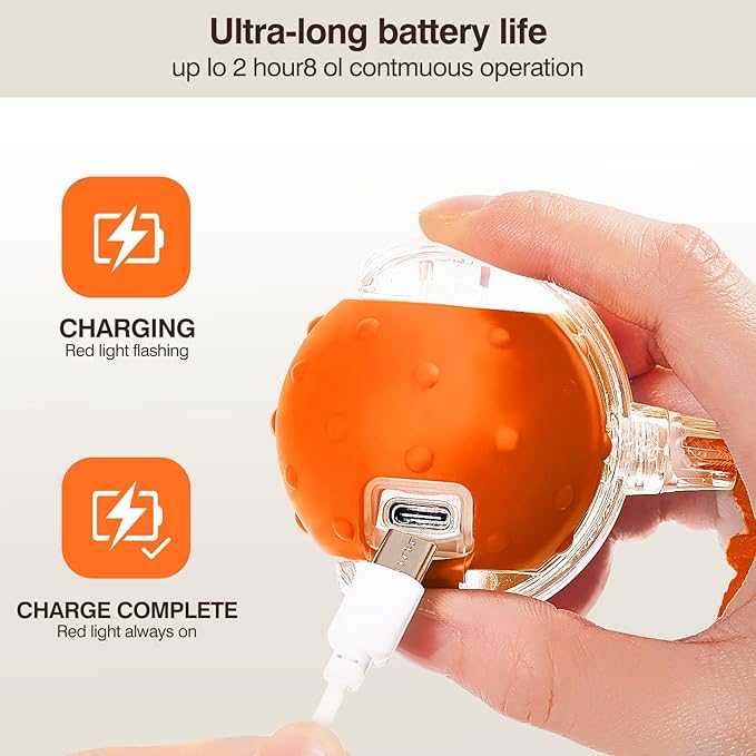 Electric Interactive Cat Toy Ball - Automatic Rolling Silicone Cat Toys for Indoor Cats, Durable Chew-Proof Motorized Kitty Ball with LED Light, Fun Exercise Toys for Bored Kittens(Orange)