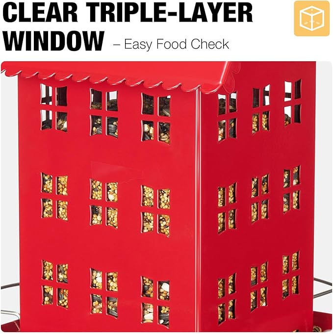 - House Shaped: A decorative, cottage-style design of this cardinal bird feeder enhances your outdoor space while providing a cozy dining spot for birds. The stylish look blends seamlessly with gardens, yards, and balconies