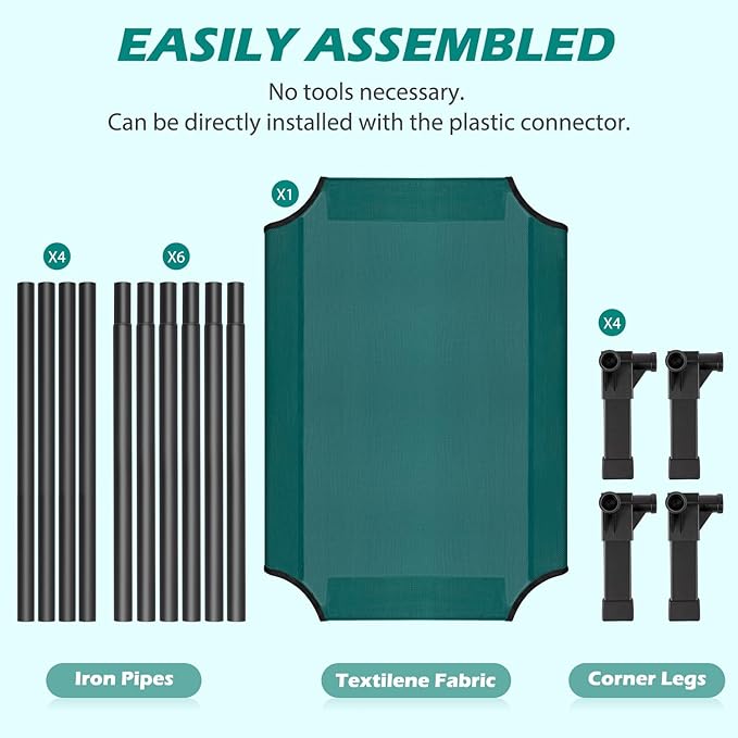 - Easy to Install: The cooling dog cot can be installed without the use of any tools, screws and can be installed directly with the plastic connector. It only takes a few minutes of your time, and presto. It's up and ready for your pet to enjoy in. Perfect for any indoor space or outdoor adventure.