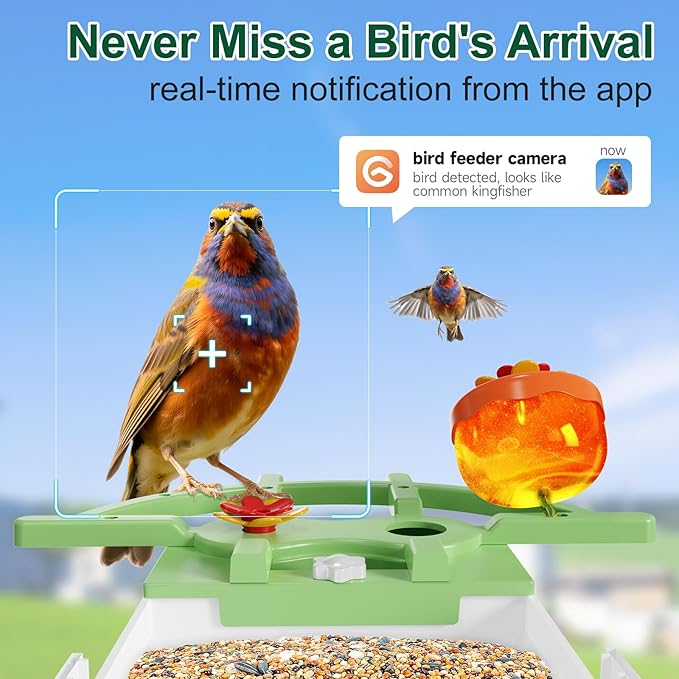 Smart Bird Feeder with Camera, AI Identify Birds Species Solar Panel, 2K HD Live Video Birdhouse, Instant Arrival Alerts, Hummingbird Feeder Weatherproof Design, Ideal Gift for Bird Lovers