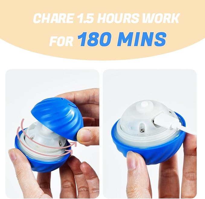 - NOTE: A quick charge of 1.5 hours provides 180 minutes of playtime. The interactive ball toy is an enrichment toy for dogs, not a chew toy for dogs, please pay close attention to prevent your dog from chewing or swallowing while playing.