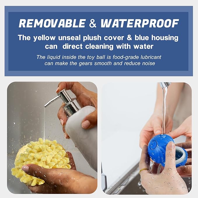 - WHAT YOU GET: Includes 1 movable dog ball, 1 plush cover that prevents chewing and reduces noise, 1 Type-C cable. Note: A small amount of safety lubricant is added to the ball cap to make the plastic cap easy to unscrew