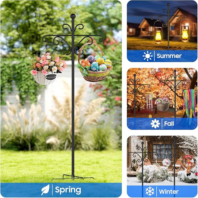 - 【 Stable and Durable Structure】 Compared with the powerful 5-prong base system and traditional models, this shepherd's hook has better stability, can prevent bending or tilting, has better wind resistance, and ensures its long-term fixation in the soil.