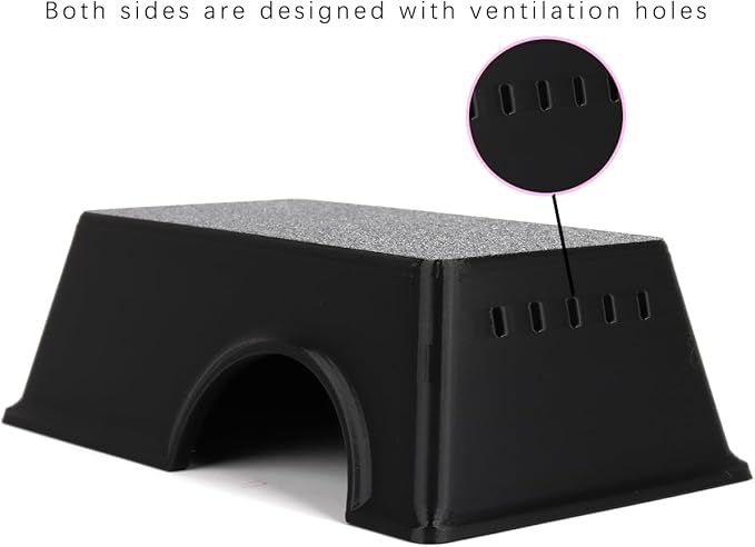 - Scientific ventilation system, balancing comfort and privacy: There are ventilation holes designed on both sides to increase air circulation, maintain humidity, prevent heat accumulation, and prevent direct view of the interior from the outside. At the same time, it retains the pet's ability to perceive changes in environmental airflow, which is in line with the snake's habit of judging the outside world through air vibration. This makes it a great addition to any leopard gecko tank setup.