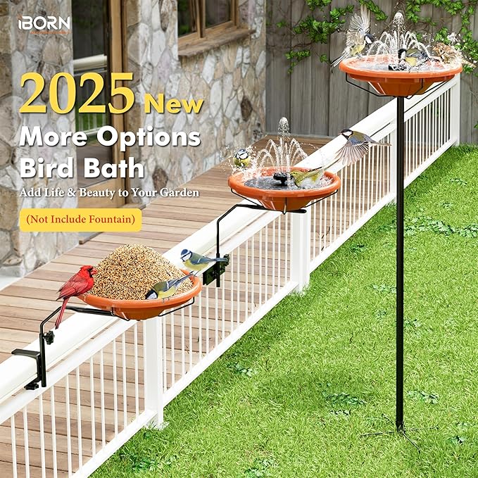 - [Tool-Free Assembly & Effortless Maintenance]:No tools? No problem! Install in minutes by inserting the 5-prong spike into soil, patios, or lawns. The detachable bowl allows quick cleaning and refilling—keeping it hygienic for birds while minimizing maintenance. Transform your backyard into a bird-friendly oasis with minimal effort!