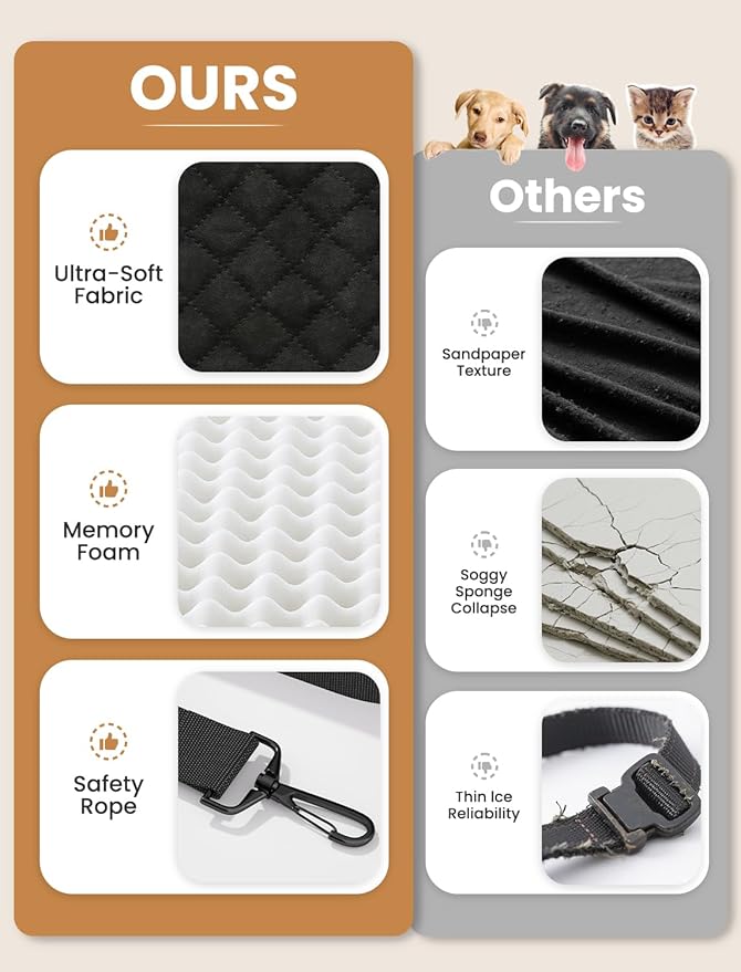 - Cloud-Like Comfort for Miles: Let your best friend travel in ultimate relaxation. The plush, premium-grade memory foam in this puppy car seat contours perfectly to your dog's body, reducing pressure points and fatigue for truly blissful car rides.