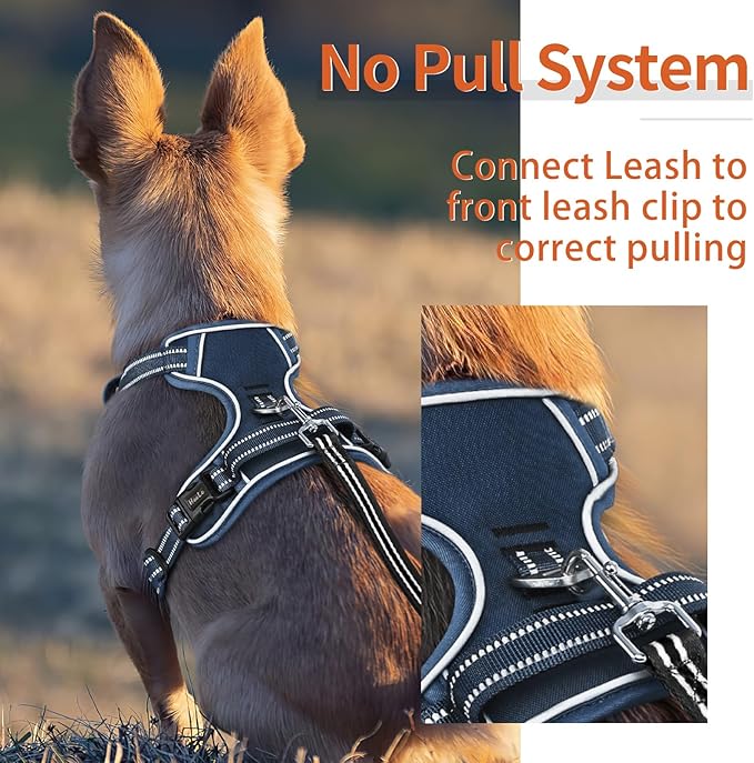 HEELE Dog Harness for Large Dogs No Pull Dog Vest Harness for Large Dog with Soft Padded Handle Reflective for Outdoor Training, Royal Blue, XL