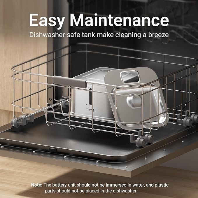 - Stainless Steel Design: The wireless cat water fountain is made of food-grade stainless steel, which is not easy to attach limescale or other organisms, maintaining healthy water quality. And it is dishwasher safe, 360° full cleaning, more peace of mind