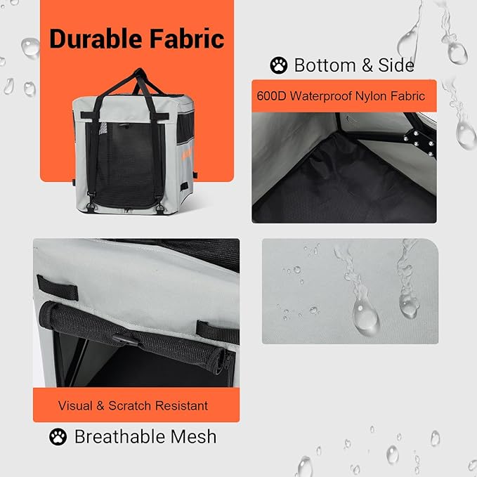 - [Rip-Resistant & Waterproof Fabric] Soft sided dog crate dog carrier made with heavy-duty 600D nylon that withstands outdoor elements and resists scratches from pet claws. The reinforced material ensures long-lasting durability for years of adventures