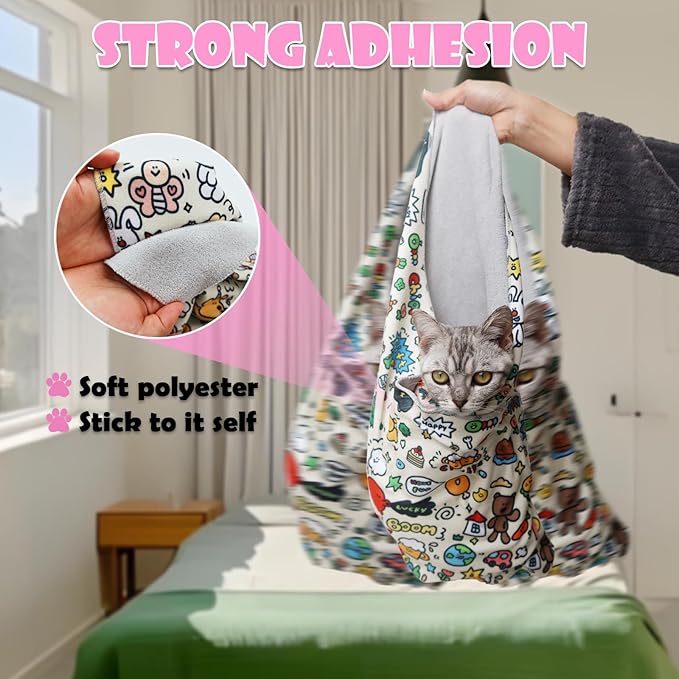 - Self-adhesive Cat Wrap: Look like a normal cloth but it can stick to itself! Restraint kitten with simple steps of wrapping. This cat swaddle wrap easily seal cat in a soft hug, set hands free from keeping it still so you can focus on things like brushing teeth, wiping eyes, giving med, cutting nails.......