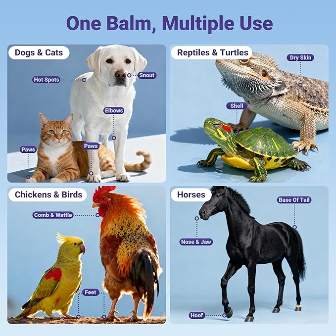 - Versatile Solution for Multiple Uses - While specially formulated for paws, our balm works on other problem areas too. Use it to soothe dry noses, snouts, protect rough elbows, and moisturize any dry skin. One balm provides complete care for all your dog or cat's tough, exposed skin areas.