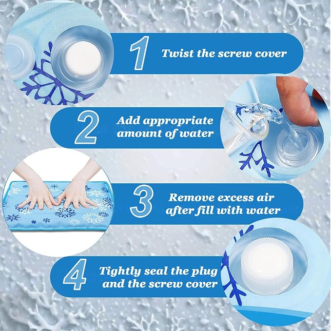 - SUMMER PET MAT: Simply fill the dog cooling mat, our Cooling Mat for Dogs provides immediate and long-lasting relief from heat for pets of all sizes. Simply place it in a shaded spot, and it cools down rapidly without electricity, perfect for keeping your furry friends comfortable during scorching summer days indoors or outdoors.